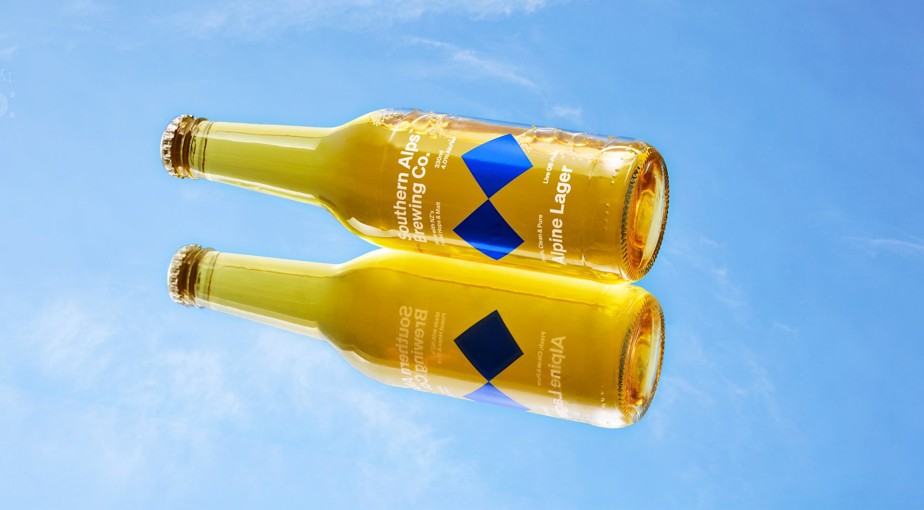 設計理念以紐西蘭南島滑雪道和冰川山脈的形象作為啤酒品牌視覺設計,青藍為品牌的主色調(diào),結(jié)合白色漸..